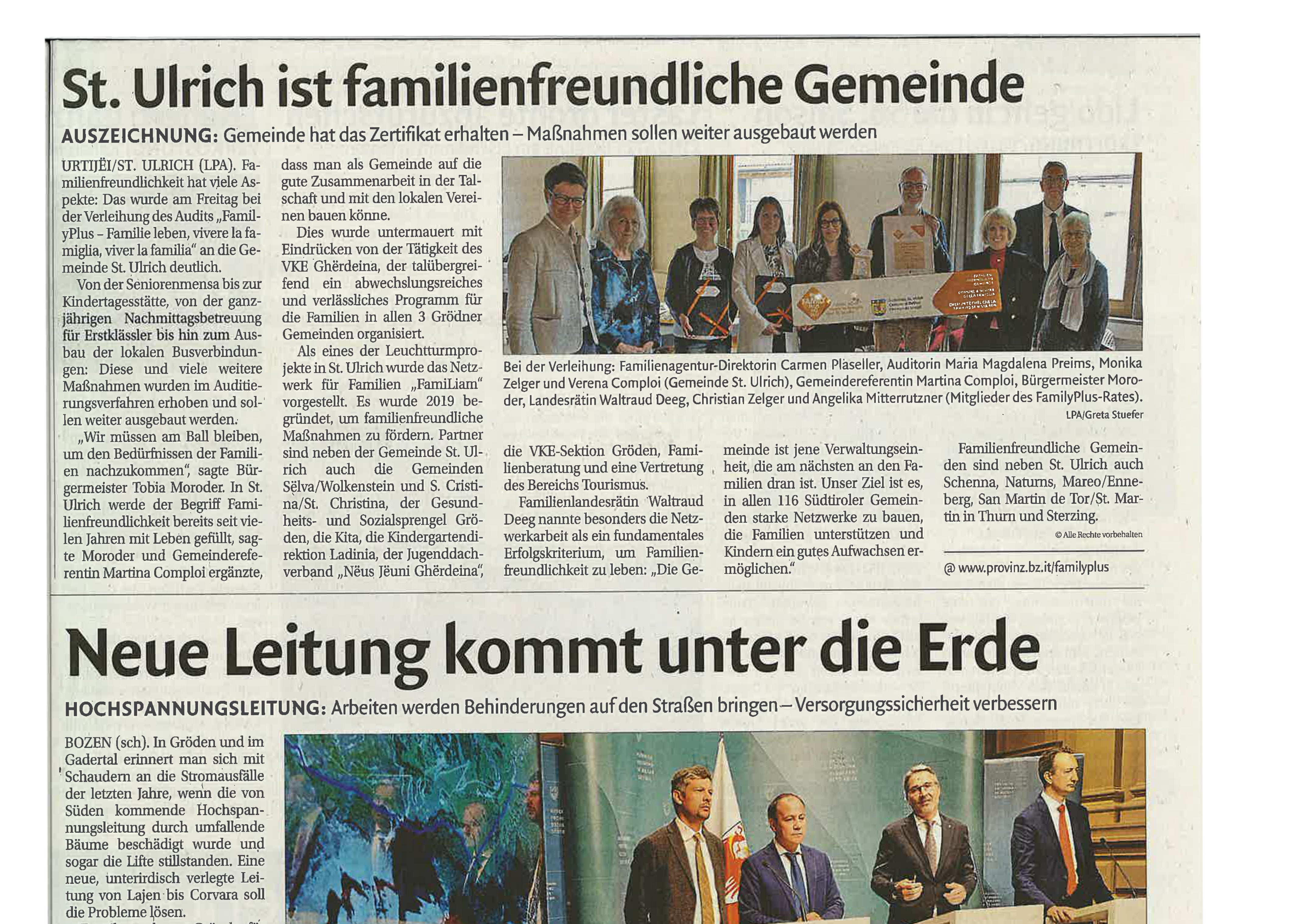 - Erstmals FamilyPlus-Zertifikate übergeben. Auf dem Weg zum „Familienland Südtirol“ (Der Vinschger 27.09.2022) (externer Link)