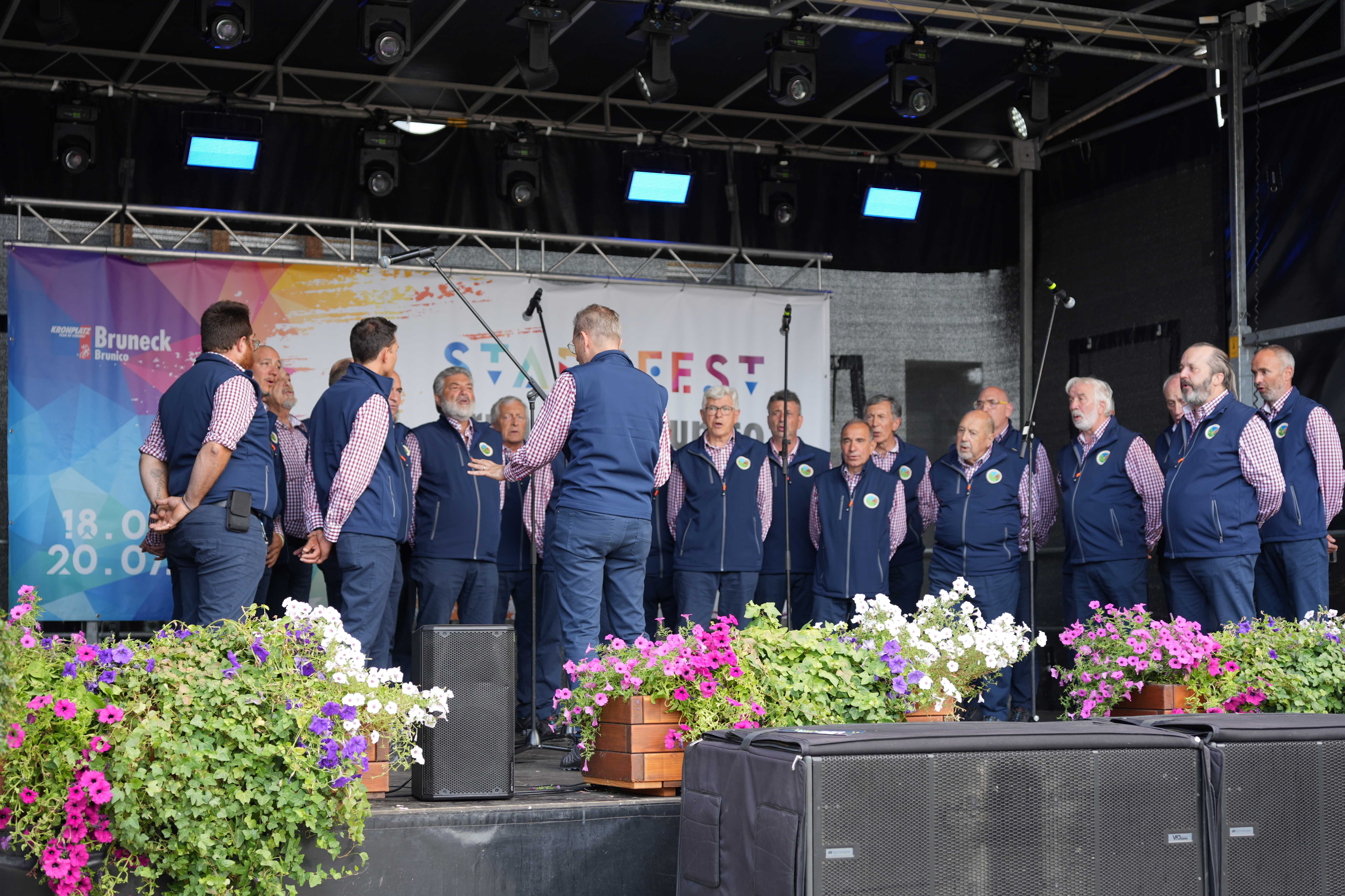 - Auftritt des Chores Valbronzale aus dem Trentino auf der Eurgio-Festbühne in Bruneck. (Foto: Euregio) » [IMG 2 MB]
