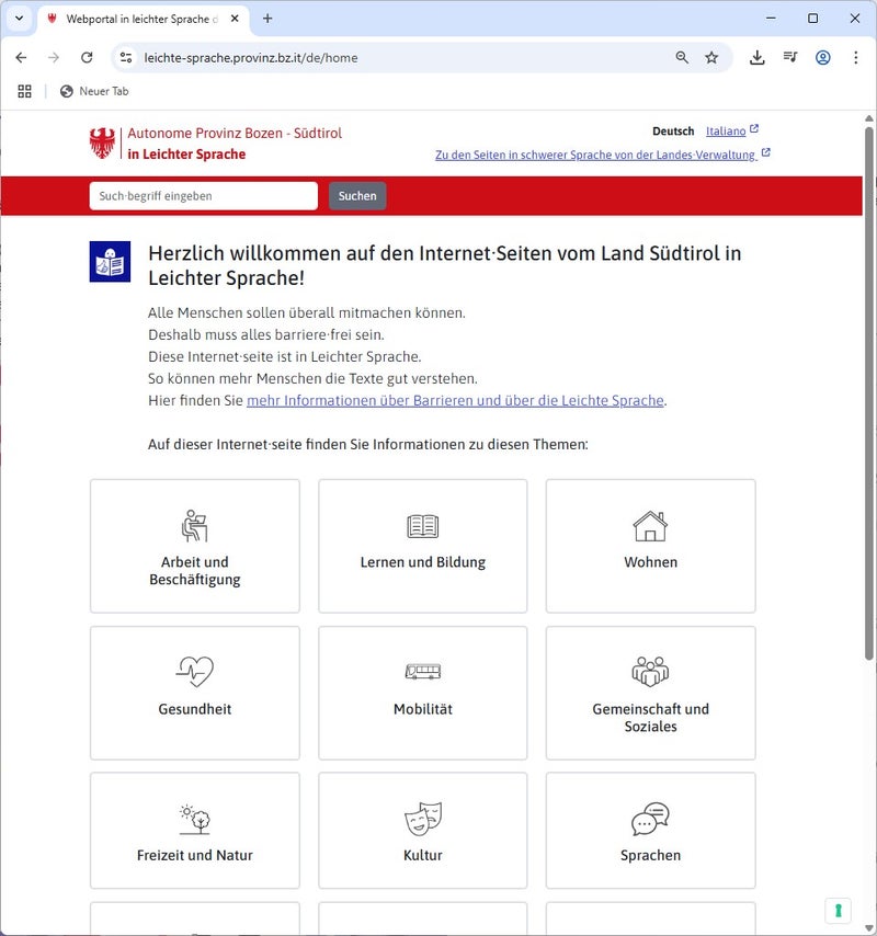 Seit 2020 gibt es das Portal der Südtiroler in Landesverwaltung in Leichter Sprache – Neue Plattform mit stark vereinfachter Navigation