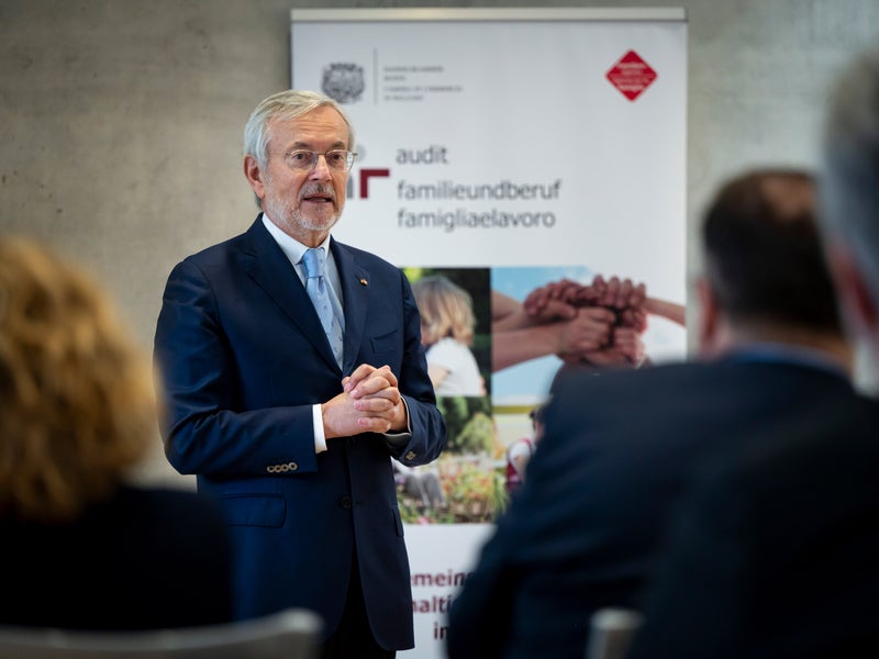 - "Familienfreundliche Maßnahmen stellen einen echten Mehrwert dar, der die Attraktivität eines Unternehmens am Arbeitsmarkt deutlich erhöht", hielt Handelskammerpräsident Michl Ebner bei der Verleihung fest. (Foto: LPA/Fabio Brucculeri) » [IMG 3 MB]
