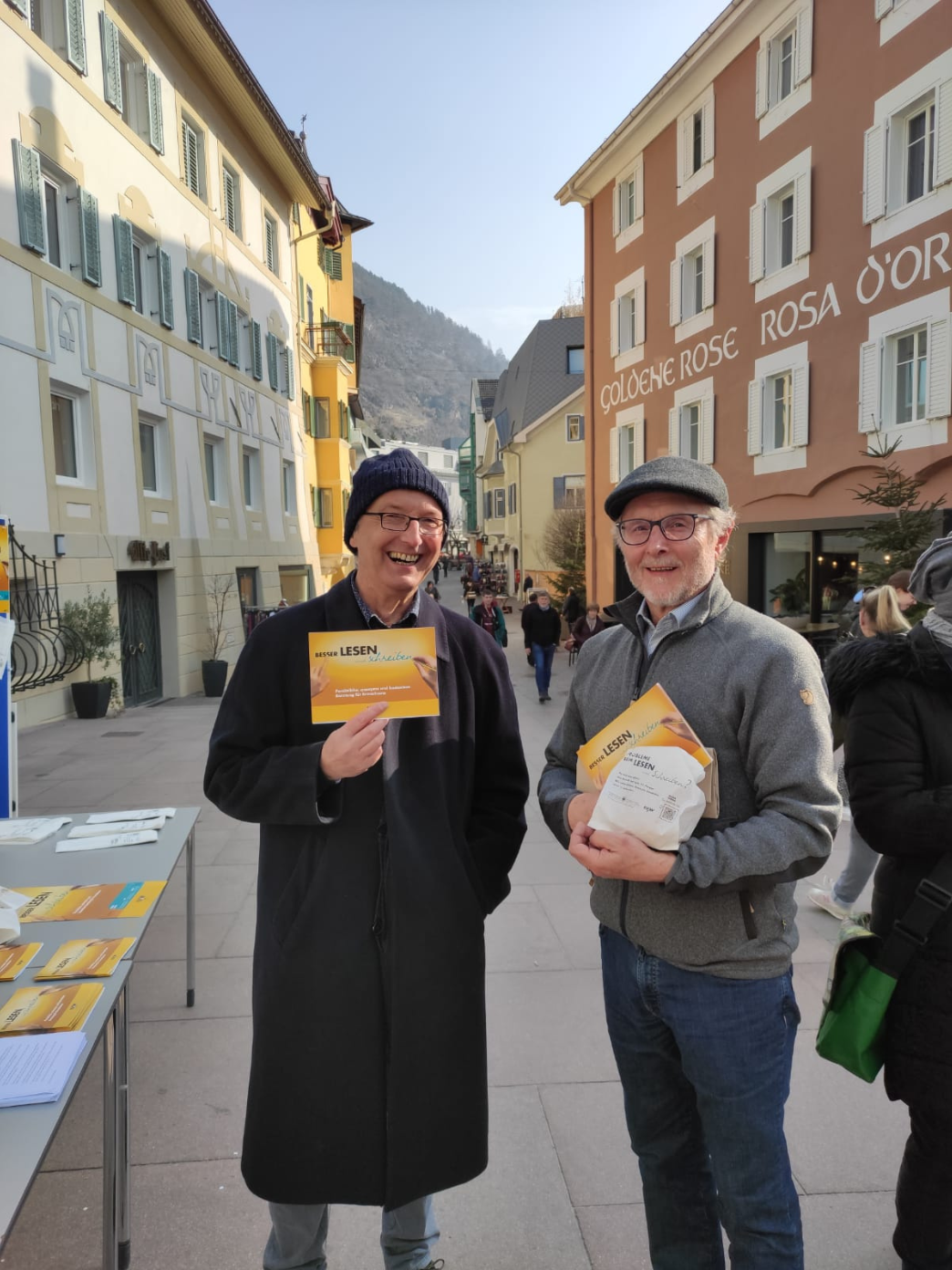 - Das kostenlose Unterstützungsangebot wurde 2022 mit einer Sensibilisierungsaktion zum Tag der Muttersprache am 21. Februar in Schlanders vorgestellt. (Foto: LPA/Landesamt für Weiterbildung) » [IMG 1 MB]